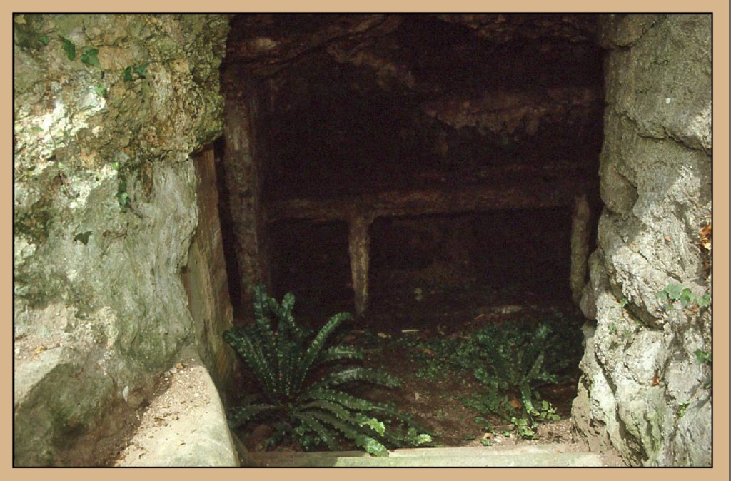 Dans son entrée (côte 55m) se trouvent encore en 1990 les vestiges d’une champignonnière ! Un escalier conduit au niveau inférieur : on ne peut explorer cette salle qui a servi d’abri durant la guerre 39-45 https://la-butte-bompard.fr/2023/03/20/les-abris car les occupants successifs de la propriété l’on utilisée comme décharge (gravas… vieux matelas etc… )