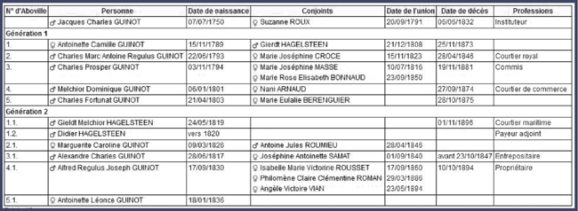 L’acte de décès de Melchior Guinot paru dans la presse locale révèle les noms des membres de sa famille; les divers actes (naissances, mariages, décès) accessibles via les Archives départementales, permettent de préciser ces liens familiaux.