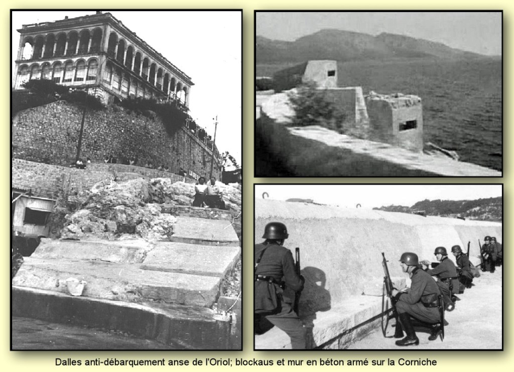 La Corniche a été bétonnée par l’armée allemande : construction de dalles anti-débarquement, blockaus et haut mur afin d’empêcher un éventuel débarquement de nos alliés.