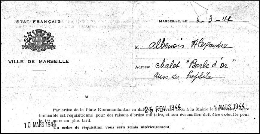 Les cabanons du Prophète sont réquisitionnés pour des raisons d’ordre militaire, non occupés mais devant rester ouverts après l’évacuation.