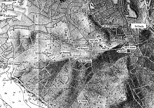 Occupation des maisons sur la colline de la Garde en fonction de leur position intéressante sur les crêtes.