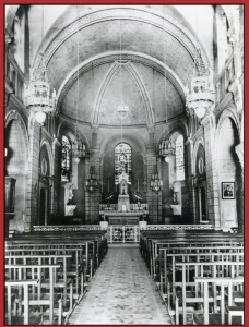 Les bancs tous identiques ont remplacé chaises et prie-Dieu que l’on voit sur une image de Communion et qui étaient réservés aux plus fidèles paroissiens (une plaque de cuivre gravée à leur nom était fixée sur le dossier-accoudoir)