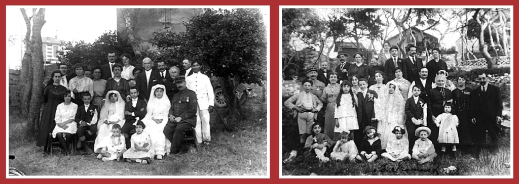 Photo de gauche : La communion de Joséphine Raffin en 1917. La famille Raffin et ses voisins Delrieu