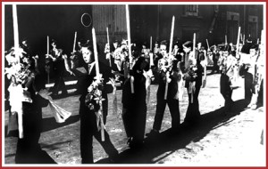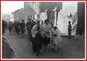 Dans la rue d’Endoume, les Communiants de la paroisse St Eugène :