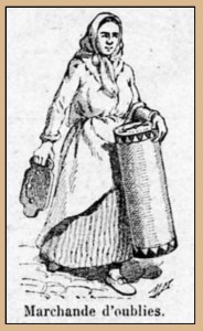 Les marchands de farine de châtaignes, de freissibons (sucre d’orge), de pizza, anchoïade et toucaou, d’oublies (pâtisserie fine et cassante pliée en forme de cornet). https://fr.wikipedia.org/wiki/Oublie