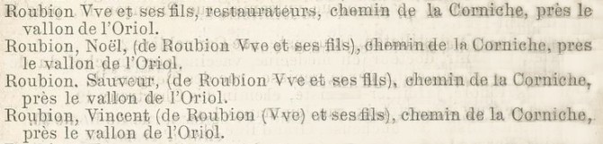 Créé au milieu du XIX° siècle par François Roubion; cet établissement luxueux était renommé pour sa bouillabaisse et son poisson.