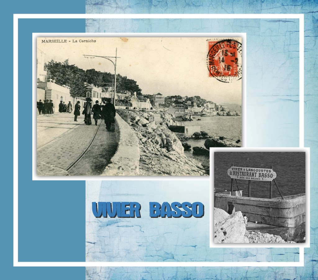 Sur les cartes postales anciennes, on aperçoit une petite construction située en contrebas de la Corniche sur laquelle un panneau indique « Restaurant Basso ». Il s’agissait du vivier, réserve de poissons et coquillages du célèbre restaurant.