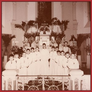 Fondation des clercs servants avec l’abbé Lafont (photo Pierre Lopez, 11 novembre 1959)