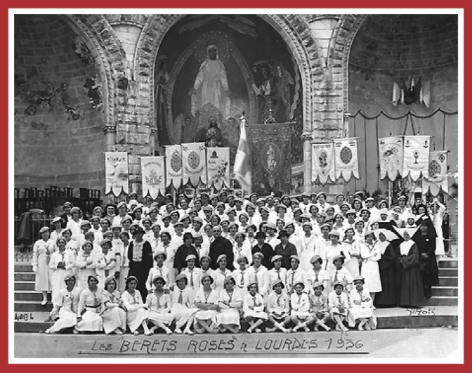 Précédant les Âmes Vaillantes, les Bérets Roses (ici à Lourdes) font partie de l’Union Diocésaine des Patronages de jeunes filles.
