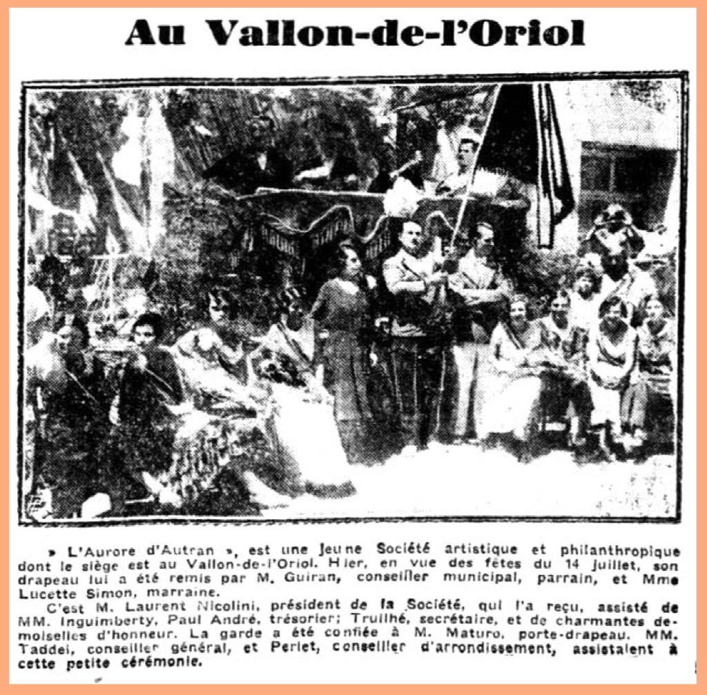 Société artistique et philanthropique créée en 1931, ayant son siège au Bar Autran, (à l’angle du ch. du vallon de l’Oriol et du bd. Amédée Autran).