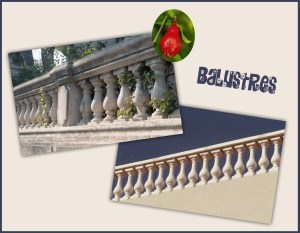 Les balustres, petites colonnades (italiennes à l’origine) doivent leur nom au renflement qui les fait ressembler à une fleur de grenadier sauvage. Elles forment des balustrades très usitées sur notre colline. Au début du XX° siècle, M. Lié les fabrique, rue de l’Étoile (rue Perlet) -en particulier celles posées à l’hôtel Bompard.