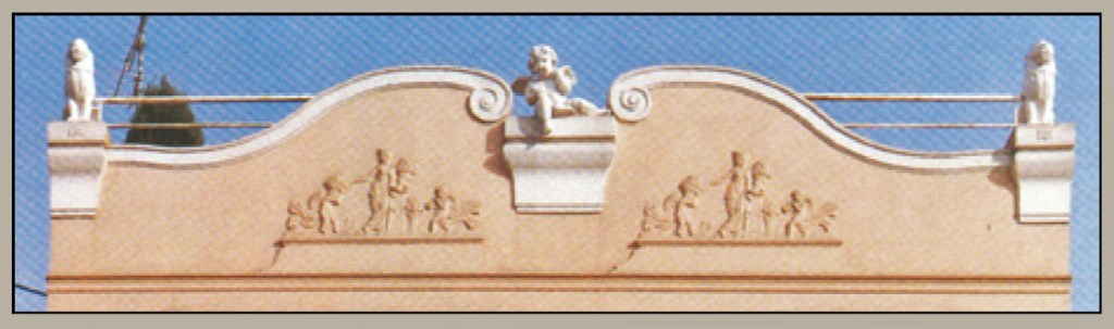 Les frontons, ornements triangulaires, « à jours » semi-circulaires sont inspirés de l’architecture grecque et se retrouvent rarement sur la Gardie.