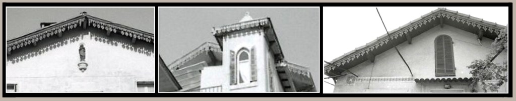 Curieux mélange de styles, traverse Pey (image centrale) : une frise « chalet » et des fenêtres ogivales sur une tourelle .