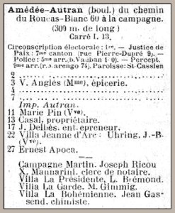 Difficile de faire le lien avec les campagnes et villas citées dans l’Indicateur marseillais 1922.