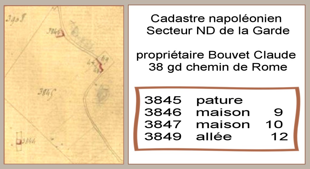 Sur le cadastre napoléonien figure entre la traverse Pey et le bd Véran une grande parcelle 3845 dite « pâture » dont la surface n’est malheureusement pas précisée.