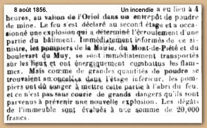 Le rapport indique clairement « c’est une ancienne Poudrière« . Un article paru dans la presse locale le 8 août 1856 permet de le confirmer : ce fut un entrepôt de poudre de mine.