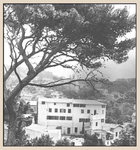 L’école vue depuis Bompard avec sa cour et ses douze platanes.