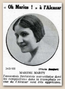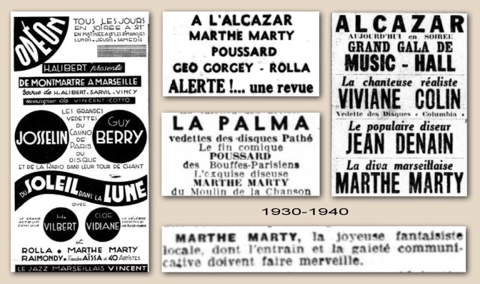 Marthe Marty dite « la cigale provençale » est à l’affiche des scènes marseillaises entre 1930 et 1940.