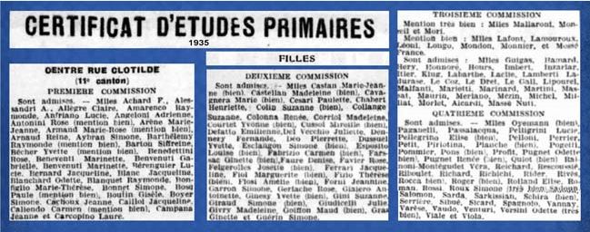 Ci-dessous la liste des élèves des écoles du 7e ayant passé cet examen dans le centre » Rue Clotilde » (aujourd’hui collège Gaston Defferre, rue Paul Codaccioni).