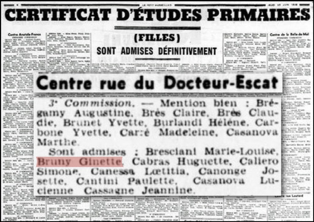 Les résultats du Certificat d’Études Primaires paraissent dans « Le Petit Marseillais » (ci-dessous en juin 1938)
