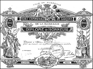 Vers 1960, la municipalité organise une distribution de prix solennelle dans le somptueux décor de l’Opéra de Marseille pour le meilleur élève de CM2 de chaque école.