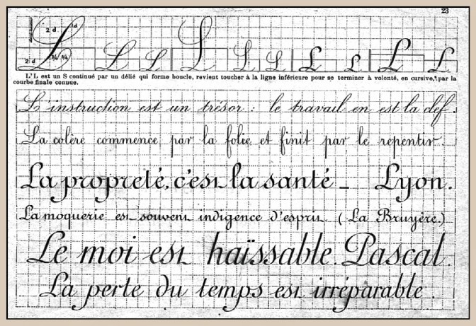 Cahier du maitre : modèles d’écriture et application avec des préceptes moraux.