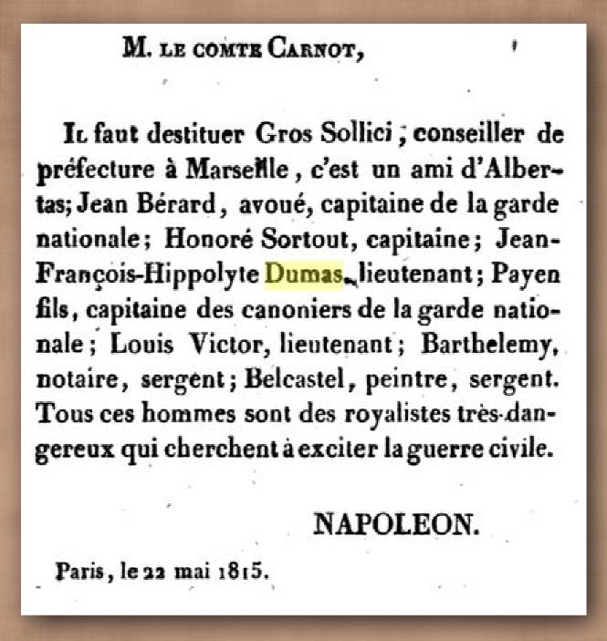 Aucun document sur J.F. Moutet n’a été trouvé, mais le nom de J.F.H. Dumas figure dans « Les lettres inédites de Napoléon »