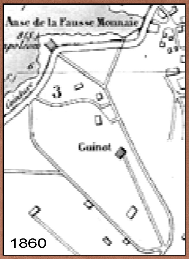 Sur le plan de 1860, trois maisons figurent entre les rues (non nommées) Nancy et Va-à-la-mer, mais seul le nom de Guinot y figure.