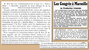 Collectionneur de plantes rares, le comte poursuit et accentue le développement des jardins de « la bastide du Roucas-Blanc »; son nom figure dans la presse locale et les revues spécialisées (Bulletin de la Sté Nationale d’Acclimatation) ainsi que celui de son jardinier, Alexandre Bernachot. Il reçoit les participants de différents congrès (Production coloniale, Rosiéristes…).
