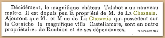 Le décès de Paulin Talabot. Le faire-part de son décès (20 mars 1885) mentionne tous ses titres et médailles; pour les obsèques de ce châtelain d’origine bourgeoise, sa famille a remis en usage les « litres » funéraires, exposant sur les tentures noires de l’église, son insigne de commandeur de la Légion d’Honneur.