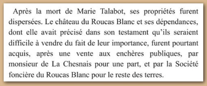 Après la mort de Paulin Talabot (1885) et de son épouse Marie Savy (1889), le domaine est vendu aux enchères (1892).