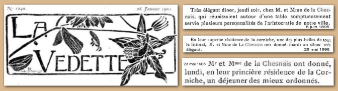 Dès lors, les diners et déjeuners donnés par le couple dans leur résidence princière sont régulièrement évoqués dans « La Vedette », revue « Politique, Mondaine et Littéraire »