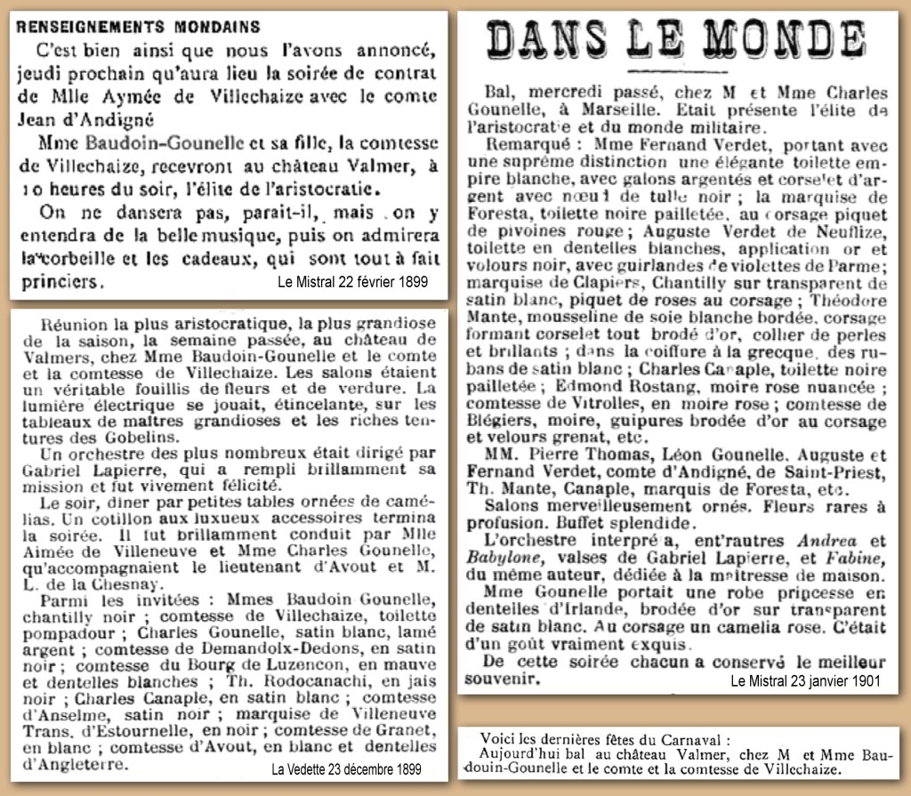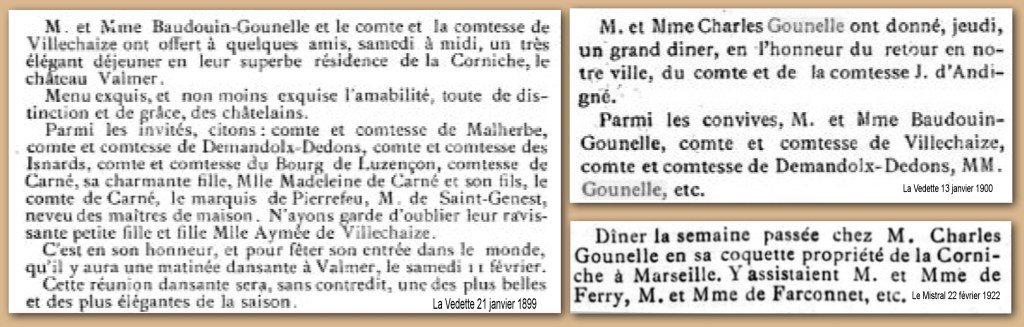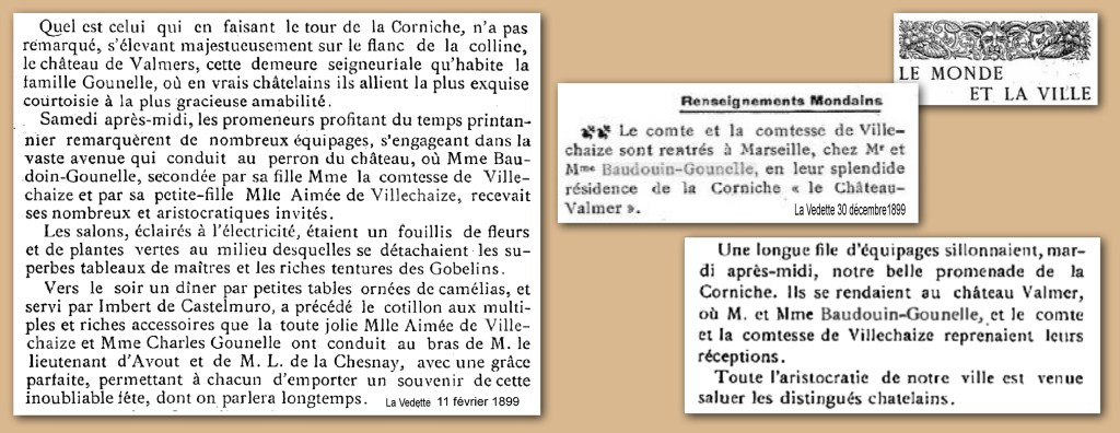 L’hebdomadaire marseillais fondé en 1875, La Vedette, politique, littéraire, artistique et mondaine rend compte régulièrement de la vie au « château Valmer ».