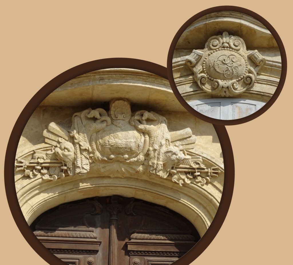 L’entrée de l’imposante villa est surmontée d’un cartouche orné d’enroulements (filets de pêcheur) et de décorations (harpons, palangrottes, flotteurs de pêche) rappelant que le lieu s’appelle « vagué à la mar » (va à la mer). La façade au premier étage expose un monogramme dans lequel sont entrelacées les initiales du propriétaire, C et G.