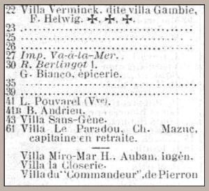 Villa Le Paradou propriétaire Charles Mazuc, capitaine d’Infanterie en retraite.
