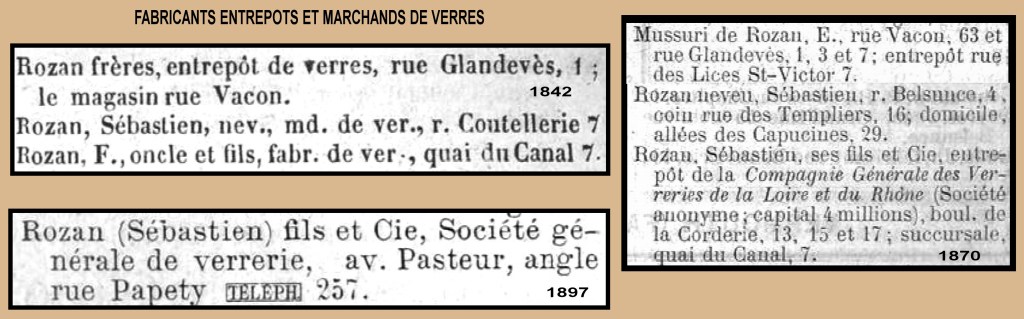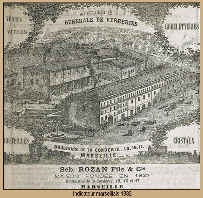 Plusieurs branches Rozan sont inscrites dans l’Indicateur marseillais durant le XIXe siècle dans la rubrique « Fabricants, entrepôts et marchands de verres ».