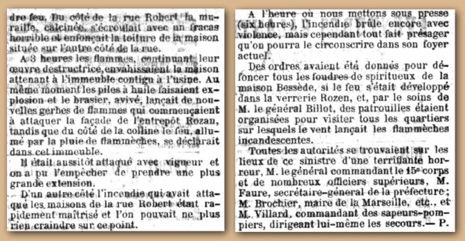 Un incendie se déclare le 1er mars 1881 dans les locaux du 18 bd de la Corderie. De nombreux articles de journaux en font un compte-rendu exhaustif, décrivant ainsi le quartier à cette époque.