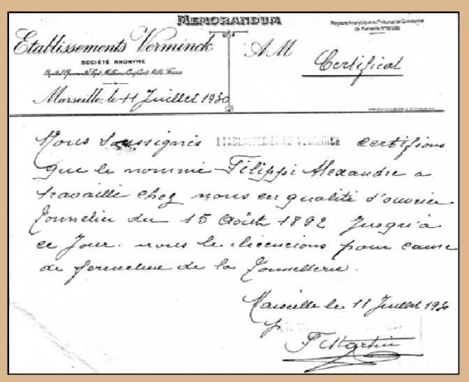 « Fermeture de la tonnellerie en juillet 1930″ : Alexandre Filippi qui y a travaillé dès 1892, est licencié; il a alors 72 ans. Son frère Vincent, lui aussi tonnelier a travaillé dans cette tonnellerie jusqu’à l’âge de 76 ans !
