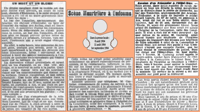 Laurent, fils de l’ex-capitaine de la Garde Civile, Victor Bosc, participa à la scène meurtrière qui eut lieu dans ce bar (voir articles de presse ci-dessous) et son frère fut lui aussi assassiné 20 ans après dans le « Bar du Siècle« , 254 rue d’Endoume (renommé plus tard « Bar du Ciel« ).