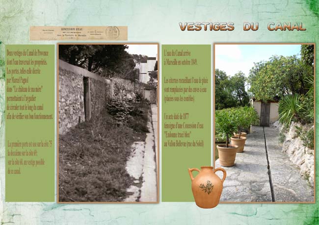 L’eau est arrivée à Marseille en 1865 et desservait la colline de la Garde via un canal qui traversait plusieurs propriétés.