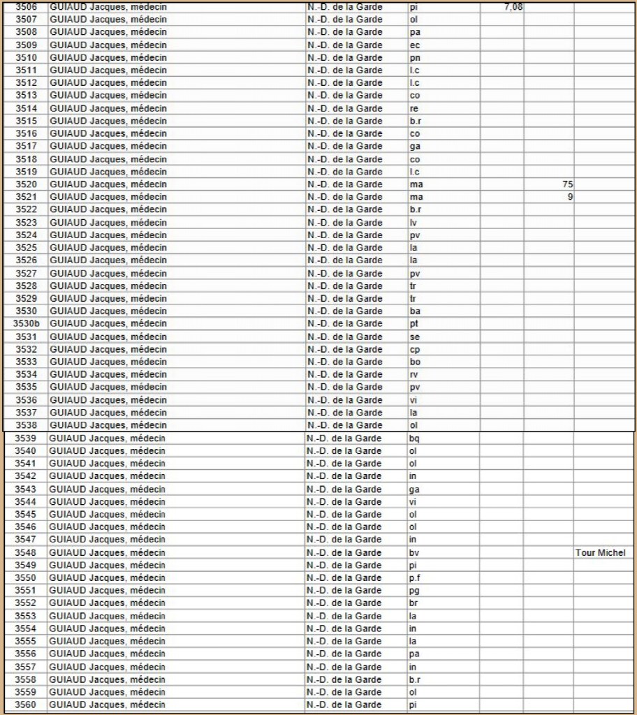 Sur le cadastre napoléonien relevé 1828), la propriété de Jacques Guiaud comprend une soixantaine de parcelles sur le secteur N.D. de la Garde : pinèdes, oliveraies, vignes, pâtures, labours, bois, remise, poste à feu, lavoir, réservoir, écurie, loge à cochon, treillard, pigeonnier, serre, un belvédère dit tour Michel, une chapelle ainsi que 3 pavillons, une petite maison de gardien, une grande bastide.