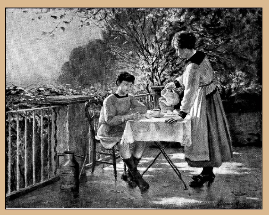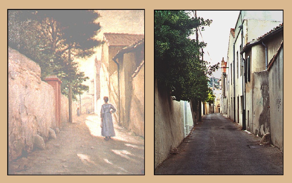 Dans le catalogue raisonné du peintre figurent deux tableaux ayant comme sujet la terrasse de la maison, 9 rue Bon-Voisin; j’ai retenu celui intitulé « Petit déjeuner sur la terrasse », peint en 1924 (avec une vue sur le vallon de l’Oriol).