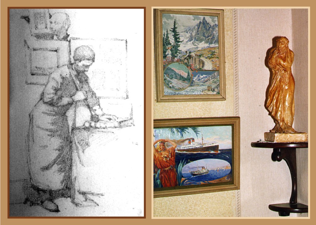 Jean Baptiste, frère de David, est sculpteur statuaire; cette statuette qui ressemble à une figure de proue de navire, a été donnée à la famille Monaco (18 rue Perlet) par les Dellepiane (17 rue Perlet). Le sculpteur a aussi construit un petit yacht dans cette rue en 1912 !