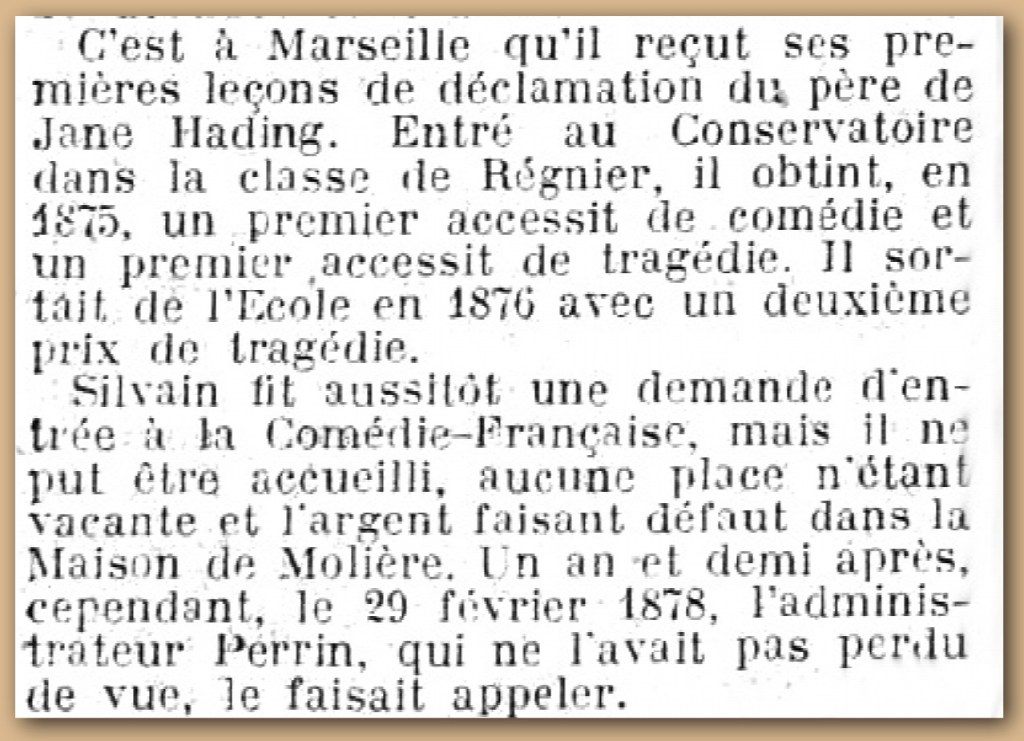 Silvain quitte le Conservatoire en 1897 et la Comédie Française en 1903.