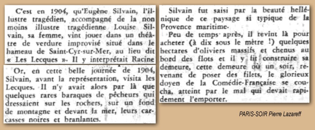 A Asnières, pas de photo de la maison des Silvain, 22 avenue de la Lauzière, mais un monument « offert à la ville par les amis et les admirateurs d’Eugène Silvain » qui a été élevé en 1934. Sur la cime, trône un buste en bronze du comédien, œuvre du sculpteur Félix Benneteau; à la base un médaillon à l’effigie de son épouse Louise.