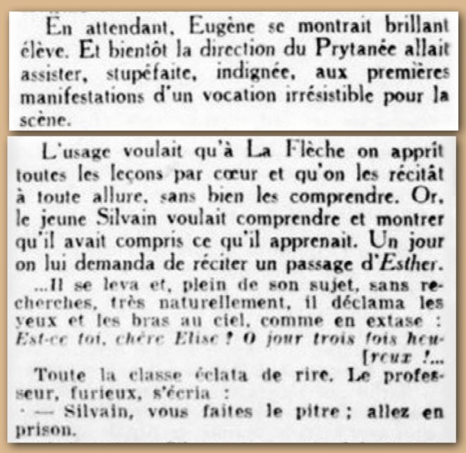 Silvain interrogé en prison s’obstina à redire sa récitation sur le même ton. On fit venir le général accompagné par le colonel commandant en second ainsi que son professeur, l’inspecteur, l’aumônier et le médecin-major ! Silvain dit encore son texte de la même façon. L’aumônier fit appel à un autre élève, le priant de réciter à son tour le passage d’Esther, puis lui demanda de le commenter; devant son silence l’aumônier demanda la même chose à Silvain. L’expérience fut concluante au regard du commentaire clair et subtil du texte de Racine fait par le jeune Eugène (qui fit tout de même de la prison).