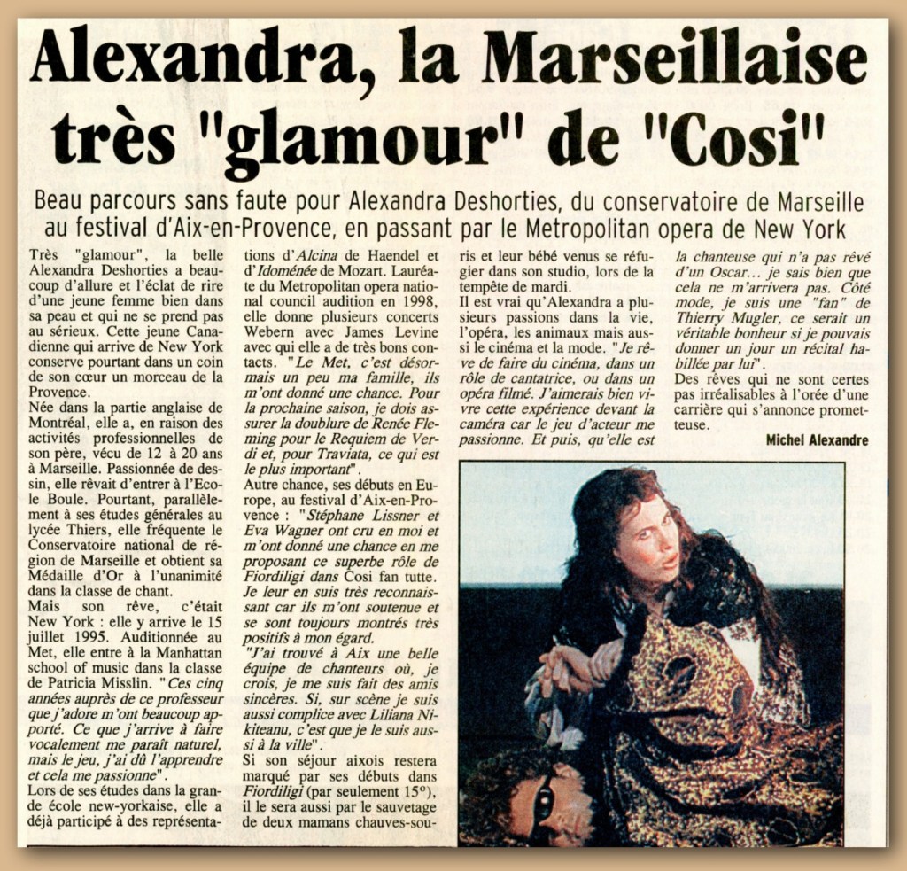 Alexandra est née au Canada (pays d’origine de sa mère) et a vécu à Marseille de 12 à 20 ans, son père travaillant au « Méridional ».