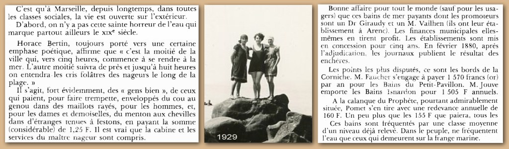 Dans le livre « Quand Marseille tenait les clefs de l’Orient », Jean Boissieu évoque les bains de mer à Marseille à la fin du XIXe siècle.