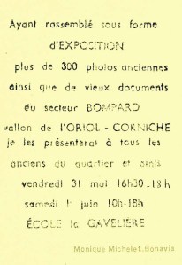 Afin de sensibiliser les habitants du quartier j’ai créé en 1998 une association qui avait pour but « recherche et diffusion d’images et de documents concernant la vie sur la colline Bompard ».