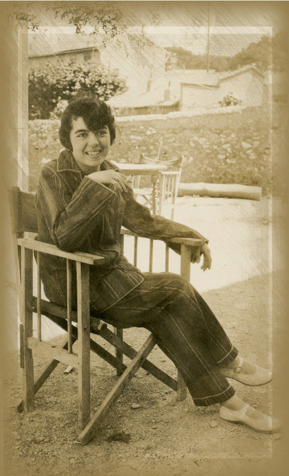 Jo (qui suit la mode) pose en pyjama en 1927, dans son jardin, rue Rigaud .
